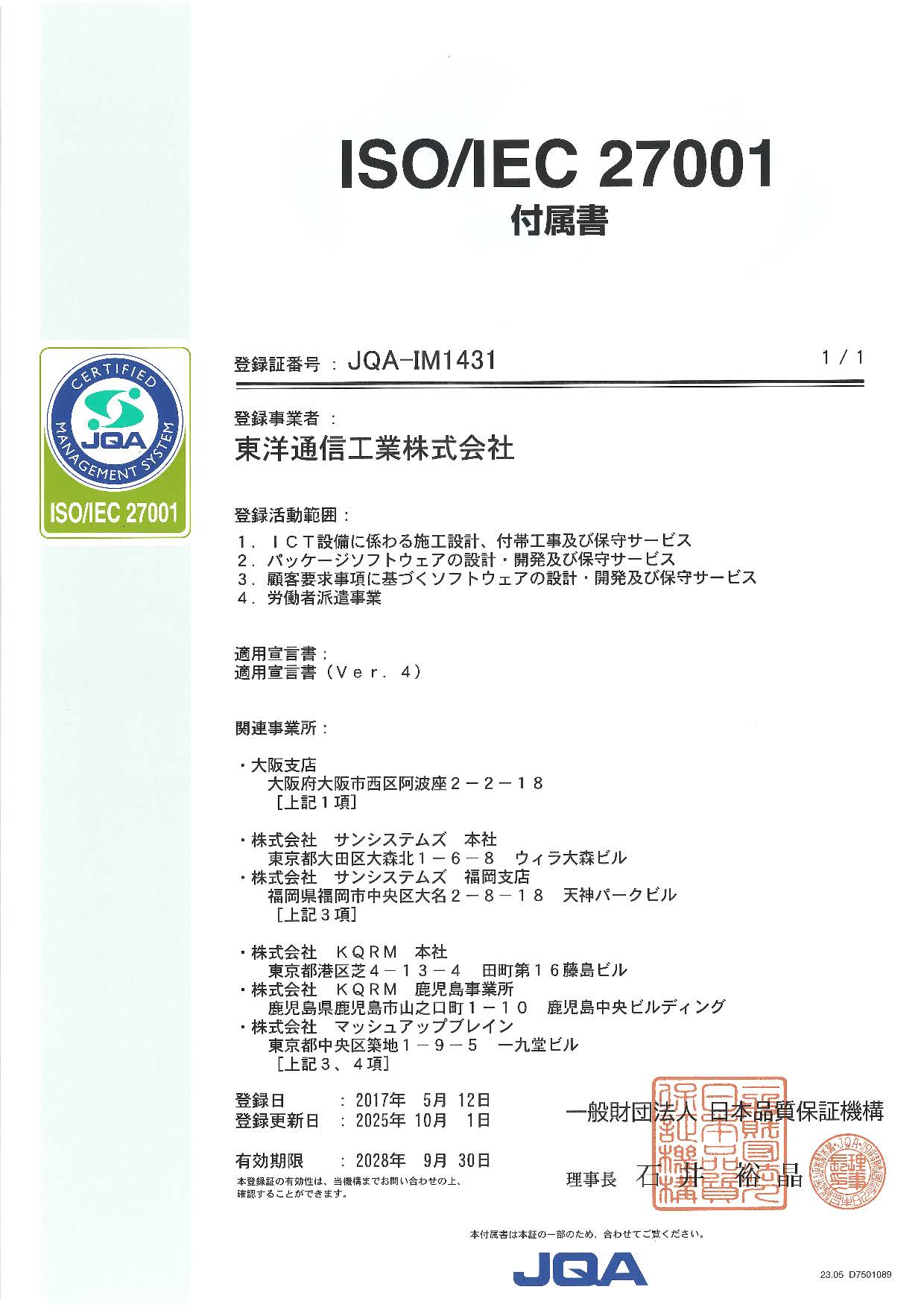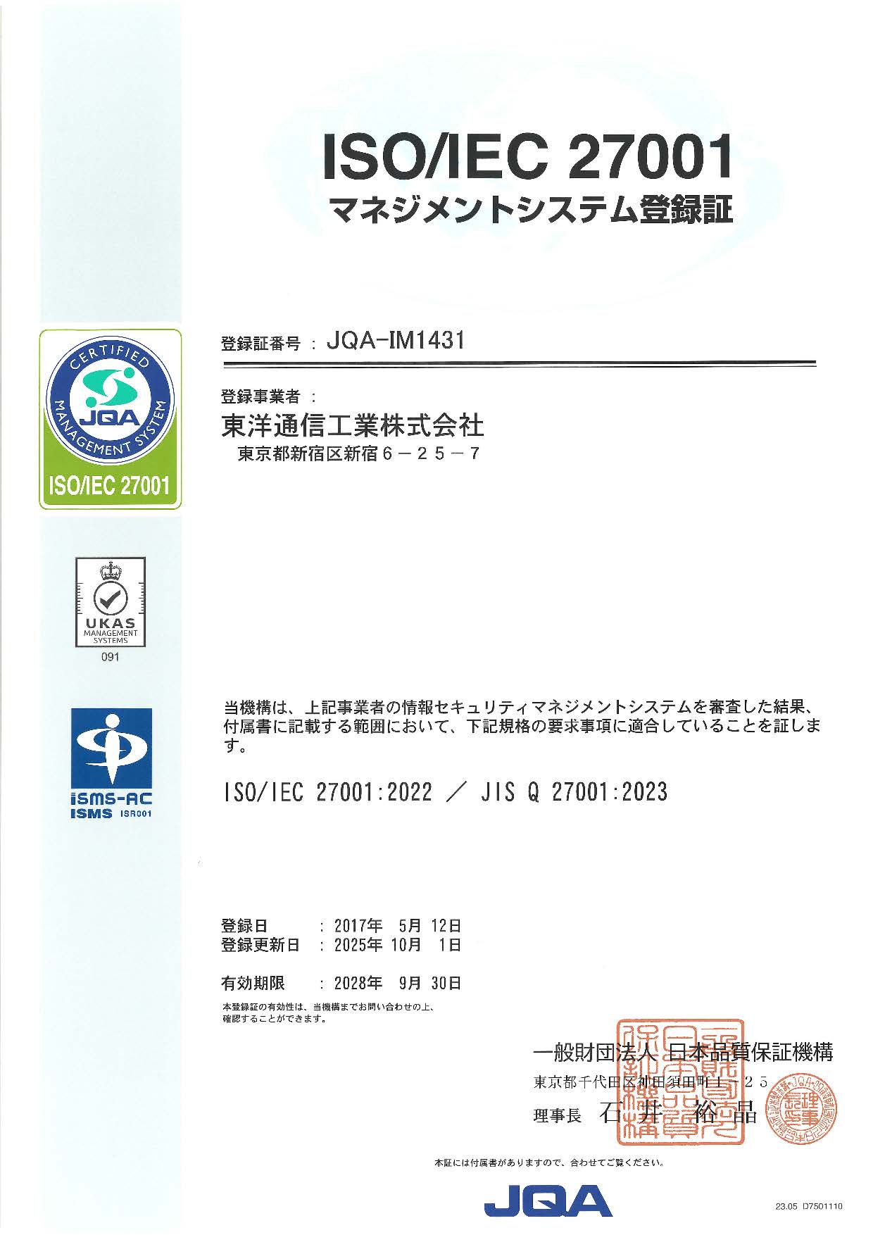 Our objective is to maintain and continuously improve our information security and to improve our customers’ sense of security.